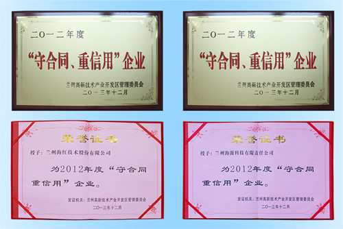 公司被評為2012年度甘肅省企業(yè)質(zhì)量信用等級AA級企業(yè)