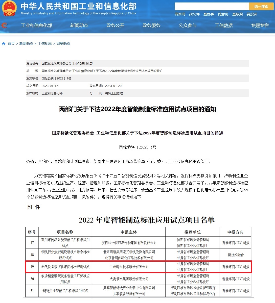 我司入選工信部“2022年度智能制造標(biāo)準(zhǔn)應(yīng)用試點(diǎn)項(xiàng)目名單”