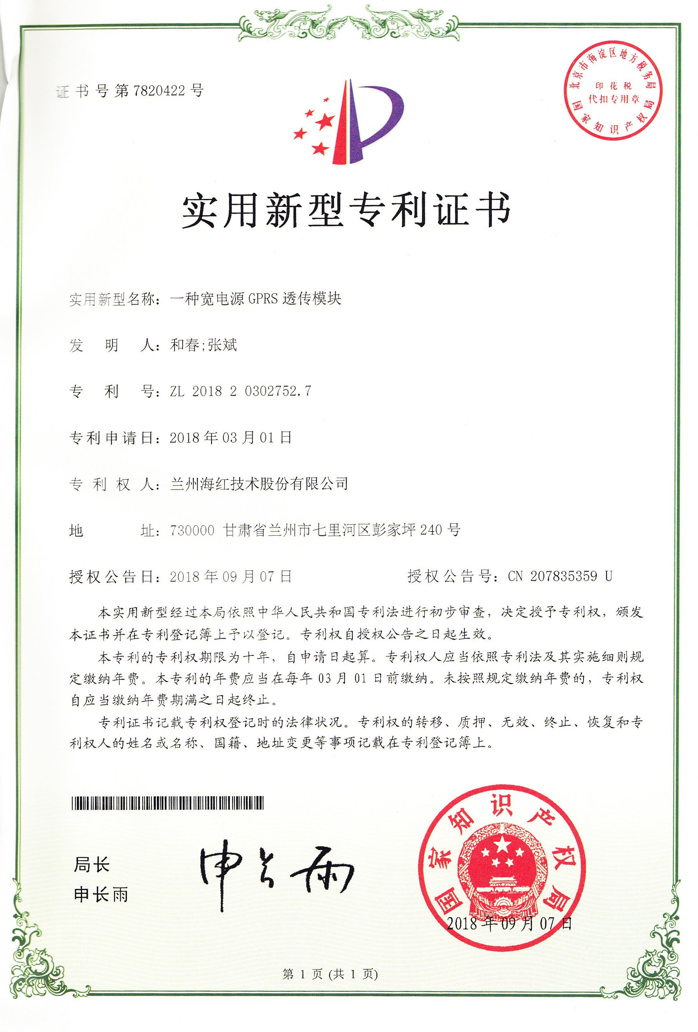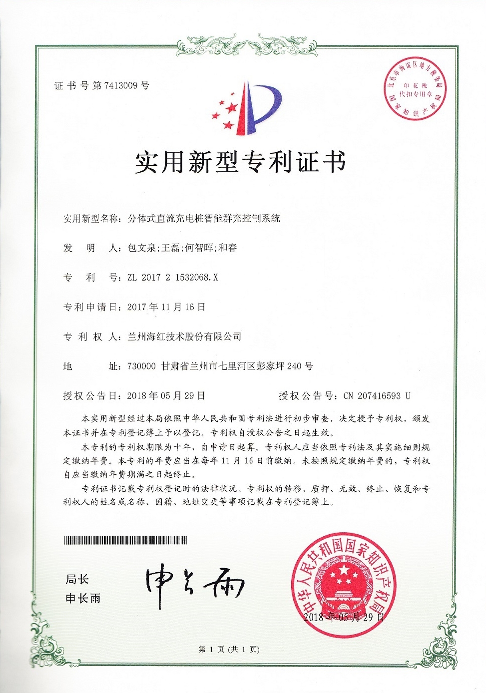 我公司又取得一項實用新型專利和完成兩項計算機軟件著作權(quán),至此我公司申請受理的專利數(shù)累積83項(其中發(fā)明專利17項,實用新型專利55項,外觀設(shè)計專利3項,軟件著作權(quán)8項),已獲得授權(quán)...