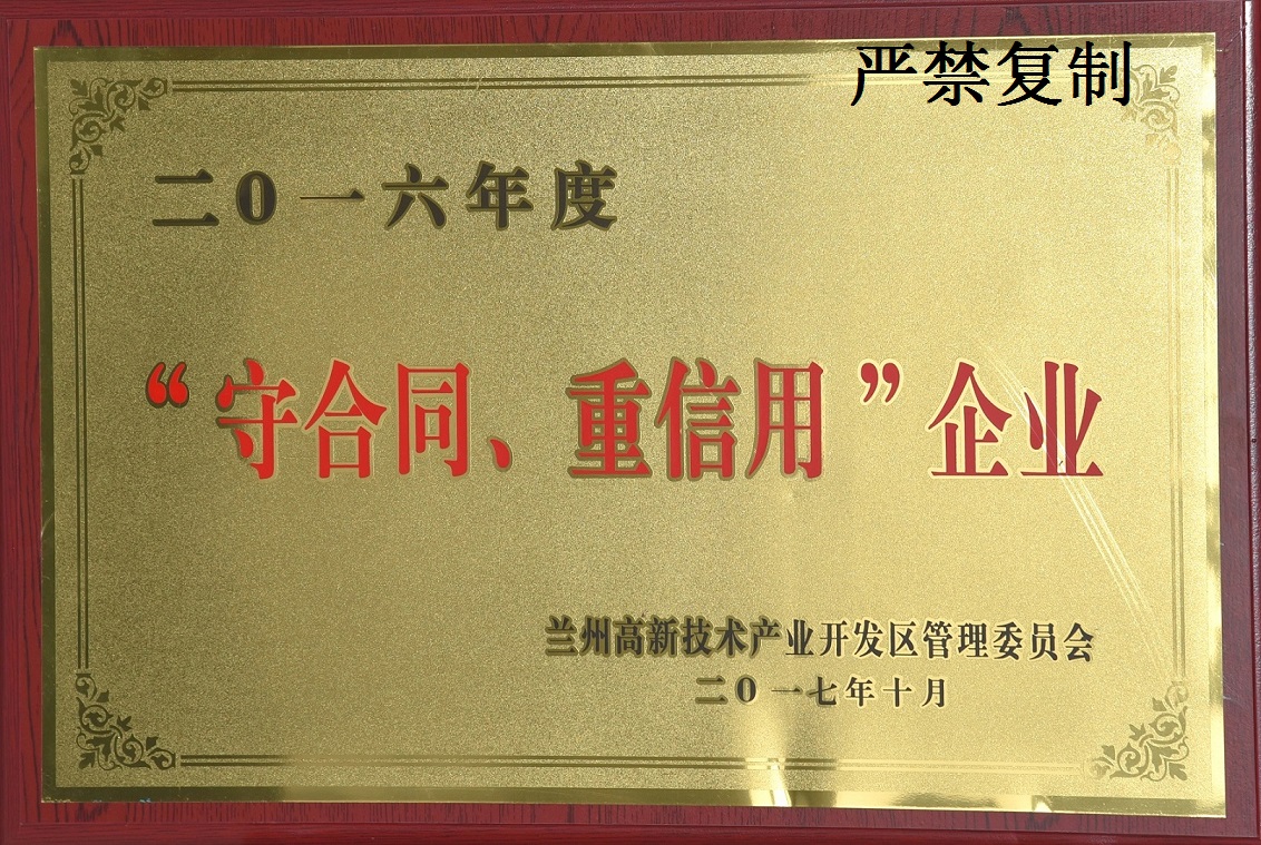 我公司及子公司(海源科技)分別榮獲2016年度甘肅省、蘭州市、蘭州高新區(qū)“守合同、 重信用”企業(yè)榮譽(yù)稱號(hào)
