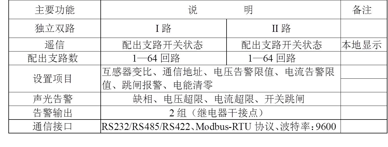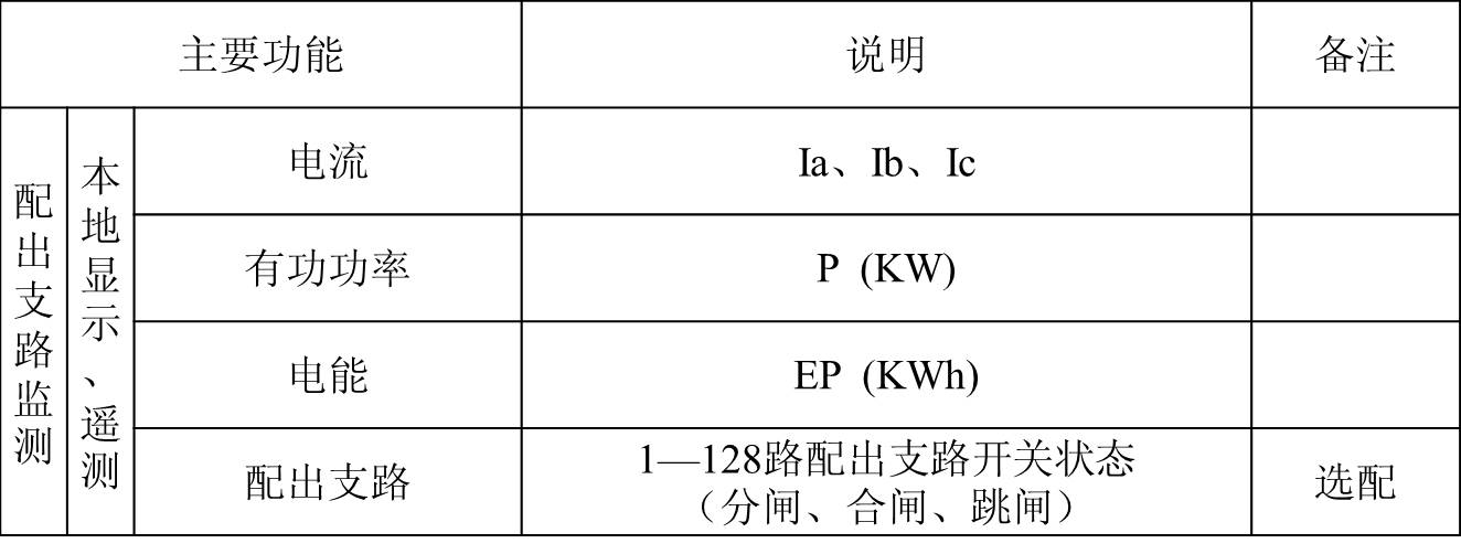 3、具有母線電壓、功率因數(shù)、頻率、總電流、總有功功率、總有功電能,多個(gè)重要配出回路的電流、功率、電能,以及各配出支路開關(guān)狀態(tài)的監(jiān)測(cè)和顯示功能。