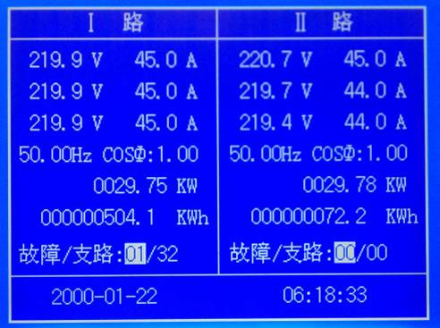 4、 具有母線電流、電壓超限,缺相以及配出支路斷路器跳閘故障聲光告警功能,并提供2組故障告警繼電器輸出接口。